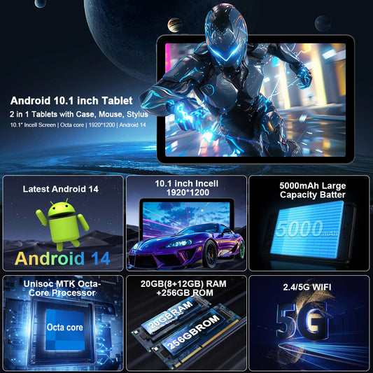 CRELANDER T6OPRO Tablet Android 14, 8GB+12GB Expandable RAM, 256GB Storage, 1920X1200 High Resolution