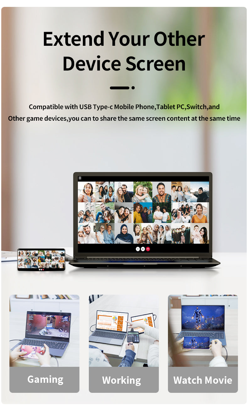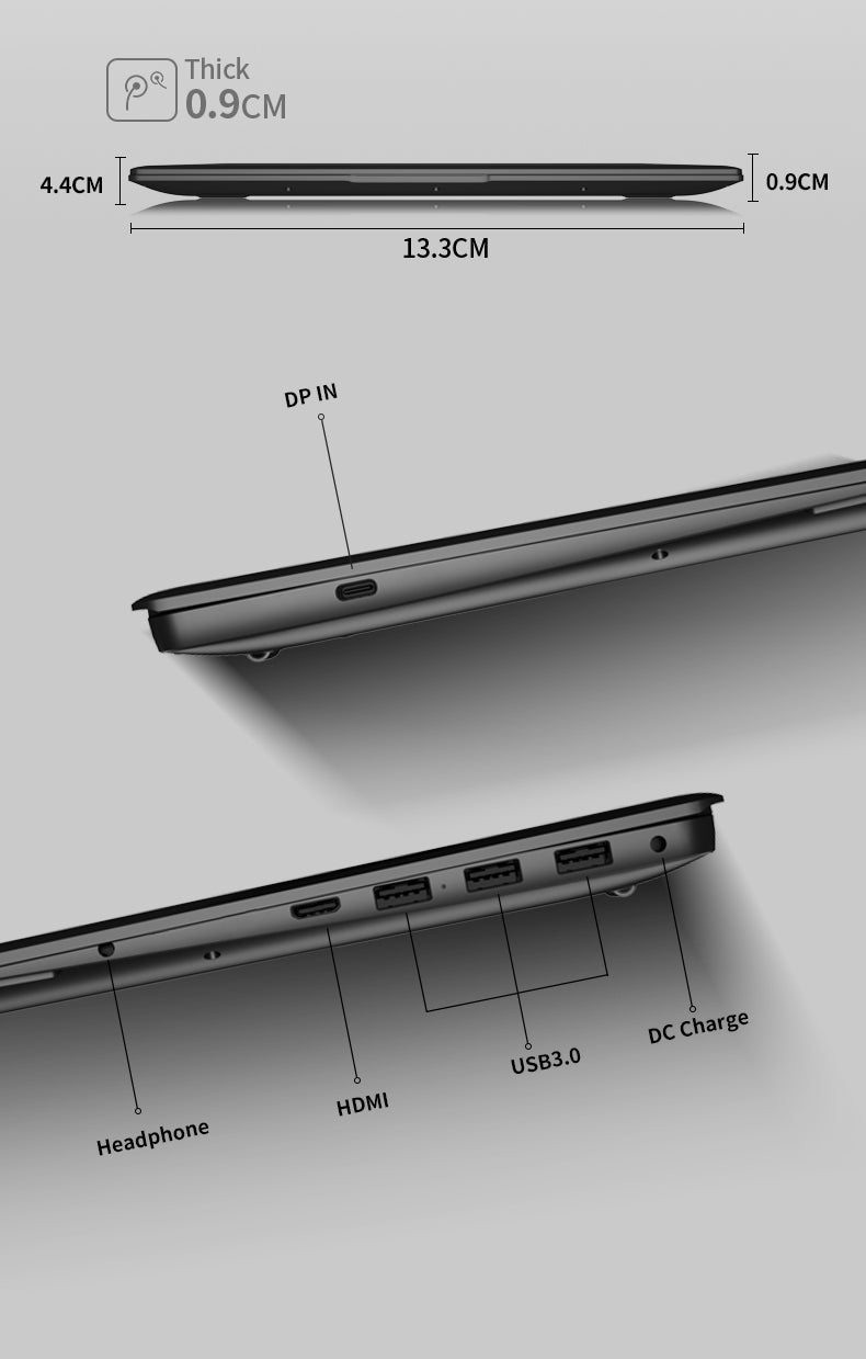 I/O-Port:USB 3,0*3, 3,5mm Heaphone Jack * 1,Typ C DP In * 1, mini HDMI * 1