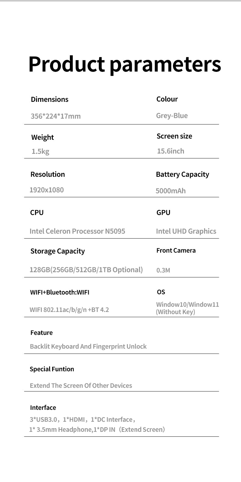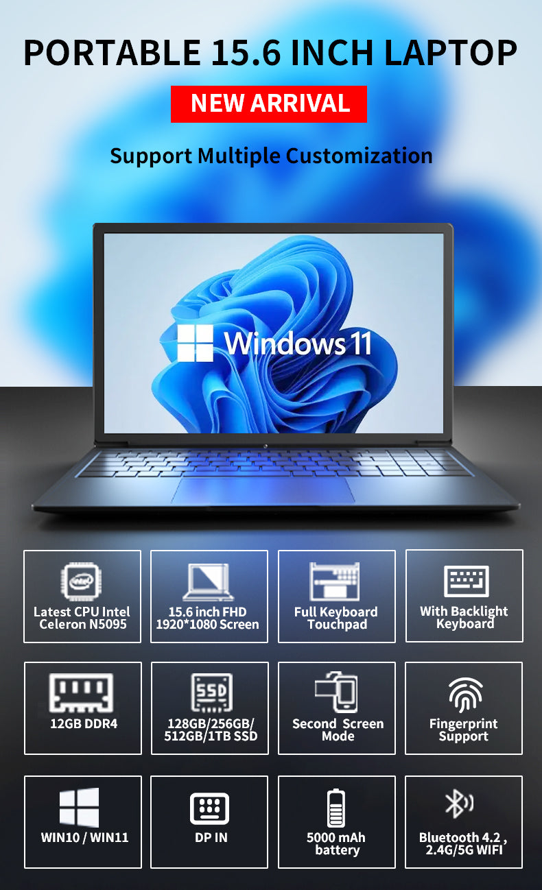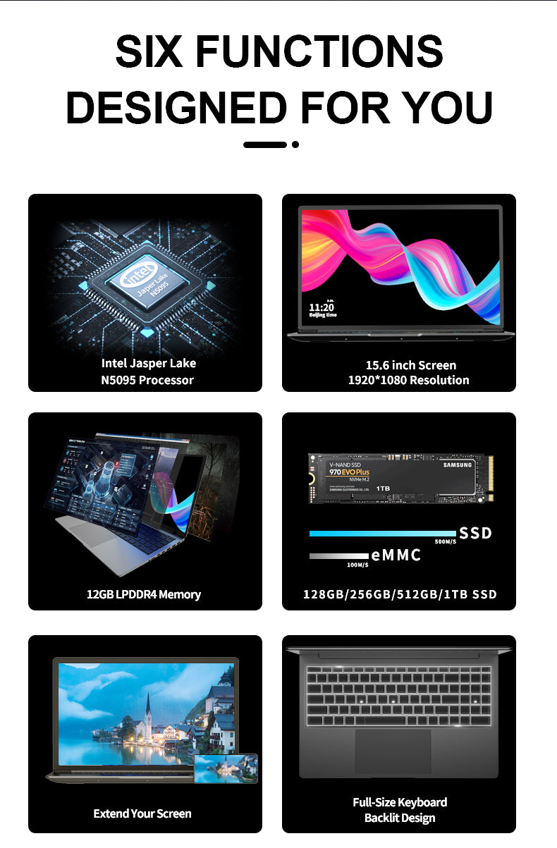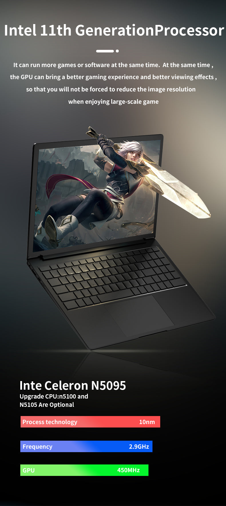 Crelander E156 Gaming Laptops 15,6 Zoll Intel Celeron N5095