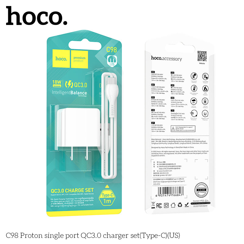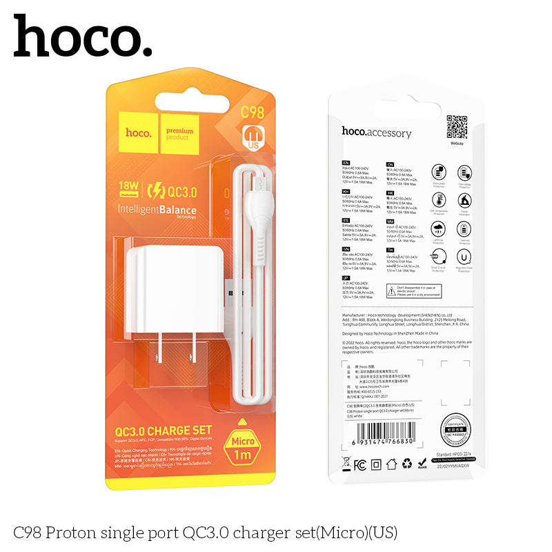 Crelander hoco.C98 Proton Single Port QC3.0 Charger kit(Type-c/Micro)