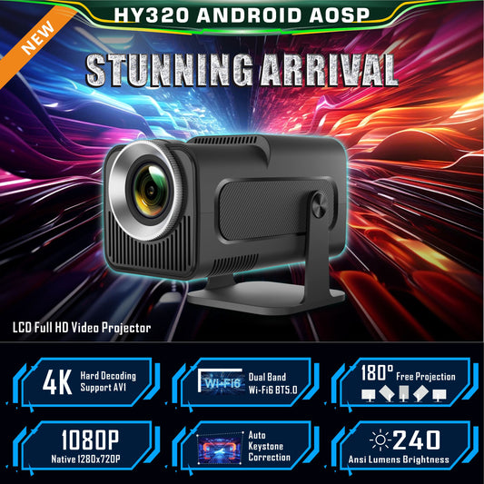 CRELANDER HY320 4K Projetor Full HD 1080P 300ANSI Dual Wifi6 BT5.0 Mini Smart Projector